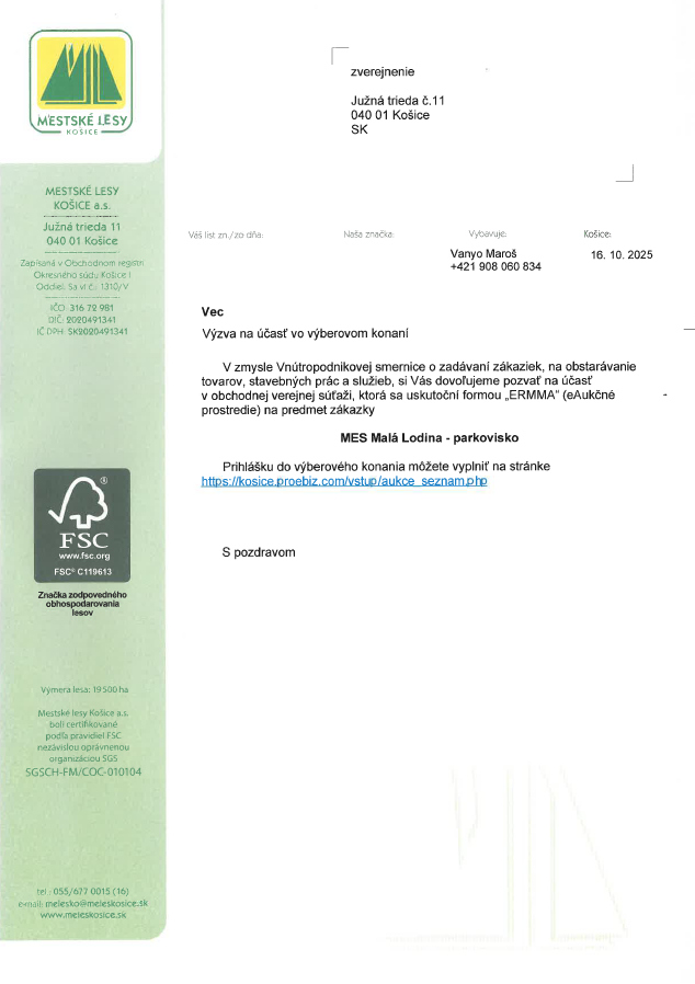 Výzva na účasť vo výberovom konaní k dispozícií |->Výzva<-|