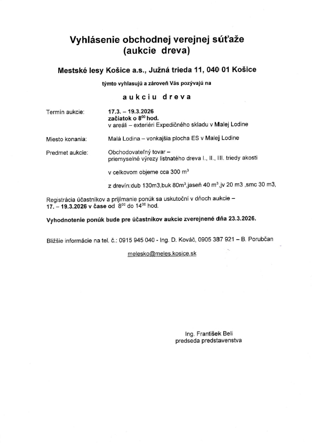 Príloha vyhlásenie obchodnej verejnej súťaže (aukcie dreva) v PDF na stiahnutie k dispozícií: Vyhlásenie obchodnej verejnej súťaže
